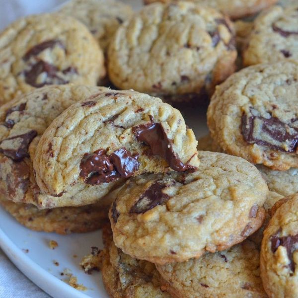 Peanut Butter Chip cookies crammed full of Reese's peanut butter chips, hand made brown sugar, lots of butter and finished off with a dusting of flaky salt.