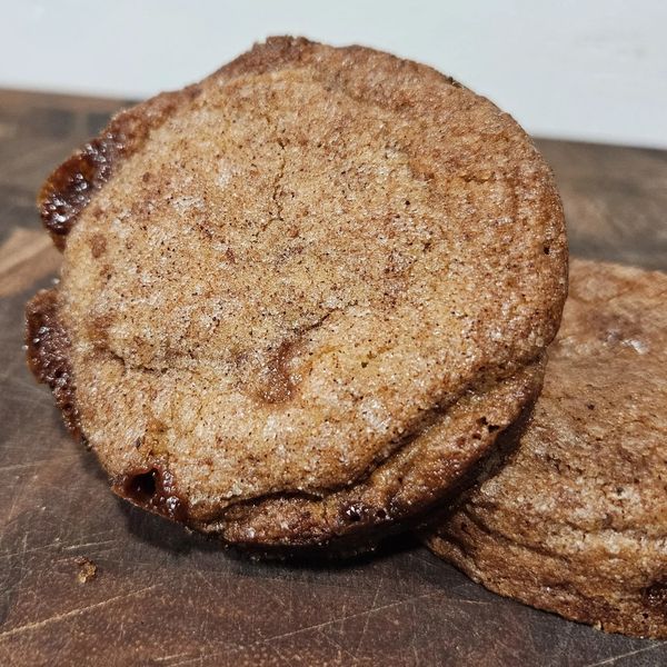 Caramel Snicker Doodle cookies crammed with caramel morsels, hand made brown sugar, lots of butter and dusted with cinnamon sugar.